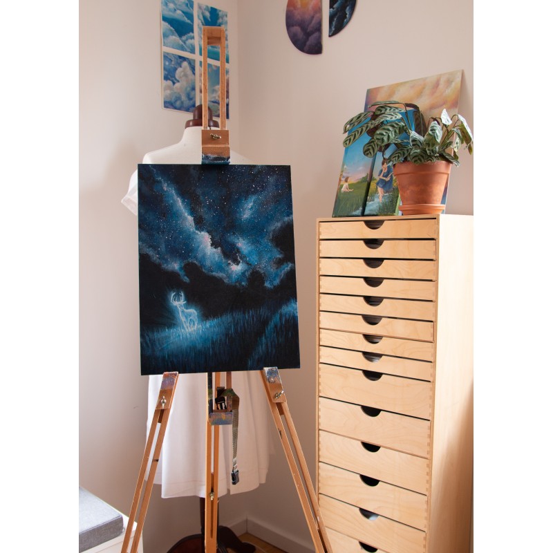 Le support : toile sur chassis, toile sur carton, papier recyclé, papier Hahnmuhle, céramique, pierre, etc. (Les toiles en cotons sont un peu plus sensibles que les toiles en lin. Ces dernières ayant un coût différent.)